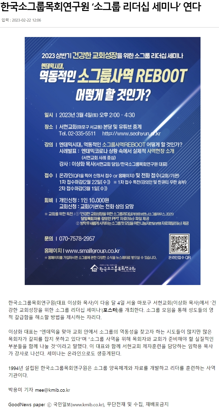| ÀÛ¼ºÀÚ : °ü¸®ÀÚ(smallgroup@webmaster.co.kr) ÀÛ¼ºÀÏ : 2023-02-23 Á¶È¸¼ö : 416 | |||