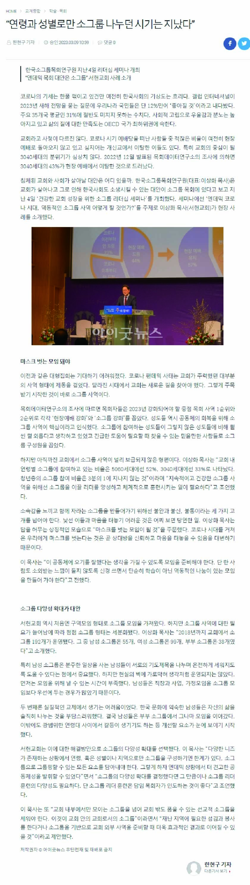 | ´ÙÀ½±Û | 2023³â »ó¹Ý±â °Ç°ÇÑ ±³È¸¼ºÀåÀ» À§ÇÑ ¼Ò±×·ì ¸®´õ½Ê ¼¼¹Ì³ª |
