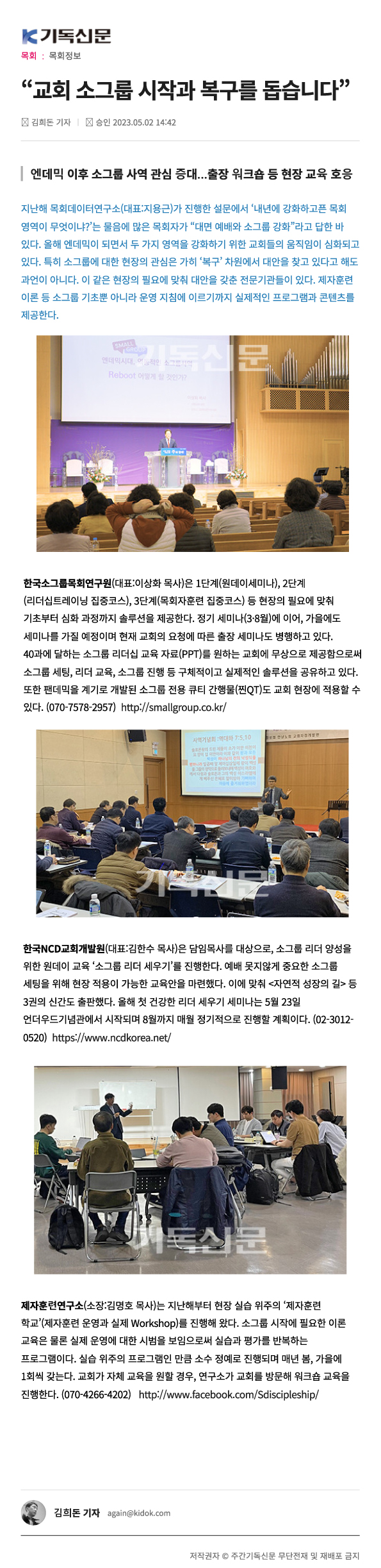 | [±âµ¶½Å¹®]"±³È¸ ¼Ò±×·ì ½ÃÀÛ°ú º¹±¸¸¦ µ½½À´Ï´Ù" 23.05.02 ±èÈñµ· ±âÀÚ | |||