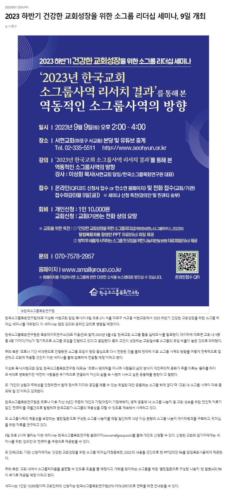 | [±âµ¶ÀϺ¸]2023 ÇϹݱ⠰ǰÇÑ ±³È¸¼ºÀåÀ» À§ÇÑ ¼Ò±×·ì ¸®´õ½Ê ¼¼¹Ì³ª, 9ÀÏ °³ÃÖ [Ãâó] ±âµ¶±³ Àϰ£Áö ½Å¹® ±âµ¶ÀϺ¸ https://www.christiandaily.co.k | |||