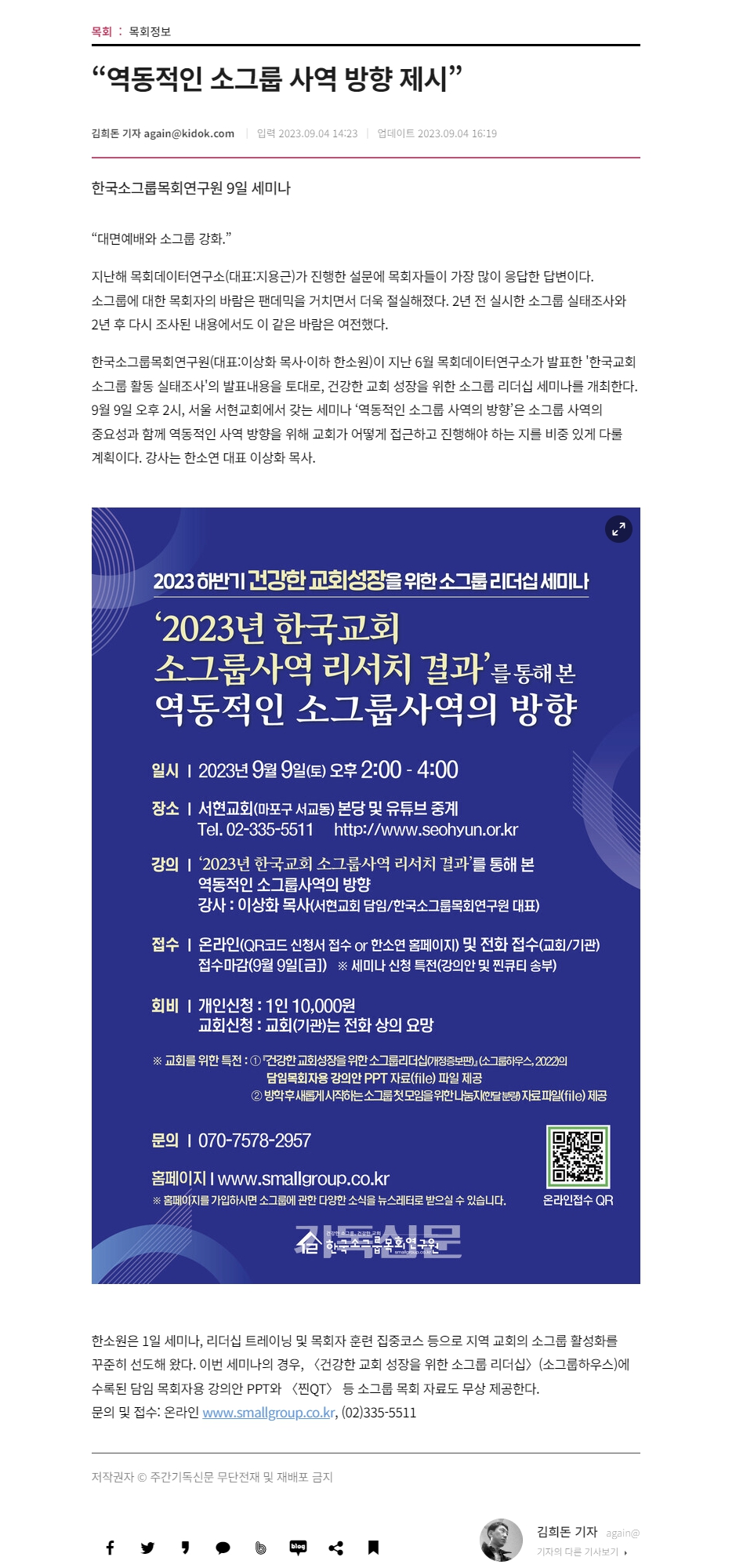 [±âµ¶ÀϺ¸]2023 ÇϹݱ⠰ǰÇÑ ±³È¸¼ºÀåÀ» À§ÇÑ ¼Ò±×·ì ¸®´õ½Ê ¼¼¹Ì³ª, 9ÀÏ °³ÃÖ [Ãâó] ±âµ¶±³ Àϰ£Áö ½Å¹® ±âµ¶ÀϺ¸ https://www.christiandaily.co.k