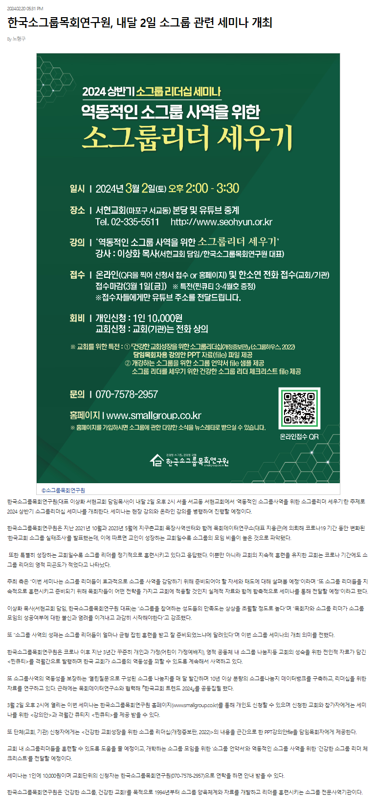 | ÀÌÀü±Û | [±âµ¶±³Çѱ¹½Å]Çѱ¹¼Ò±×·ì¸ñȸ¿¬±¸¿ø, 2024 »ó¹Ý±â ¼Ò±×·ì¸®´õ½Ê ¼¼¹Ì³ª |